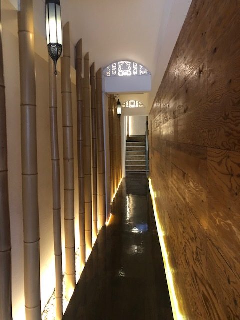 ビルの入口を入ると竹の回廊が!
