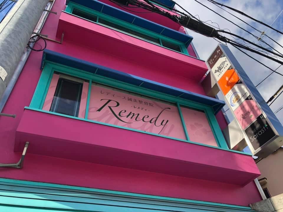 レディース鍼灸整骨院レメディは阪急豊中駅から徒歩4分。目立ち過ぎるほどピンクのビル2階にあります♪