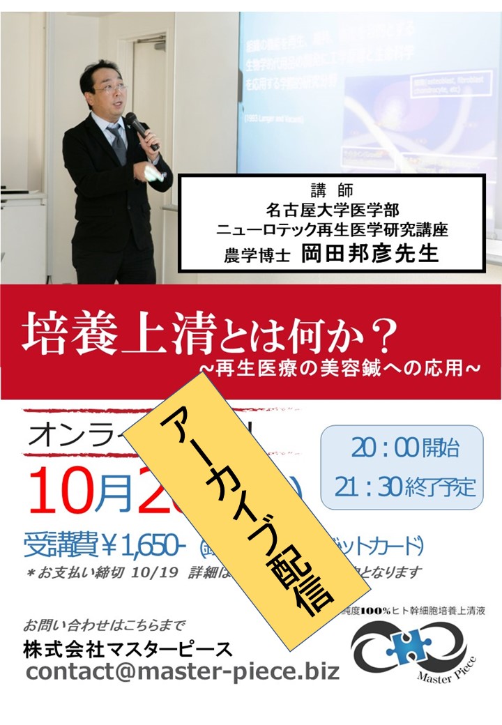 培養上清を研究・開発されている岡田先生の直接のレクチャーですのでお見逃しなく!